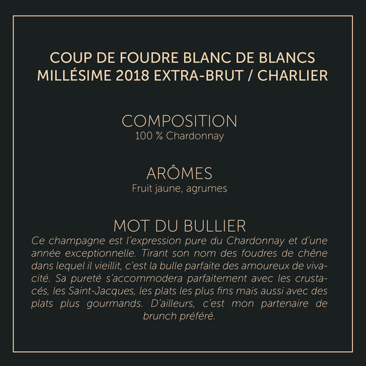 Coup de Foudre Blanc de Blancs Millésime 2018 - Charlier - Extra Brut