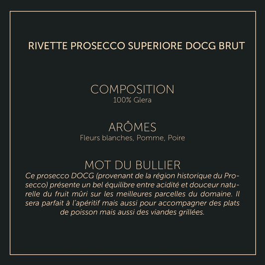 RIVETTE – Prosecco Supérieur Valdobbiadene DOCG – BrutPrix habituel €14,50Prix habituelPrix unitaire / par-