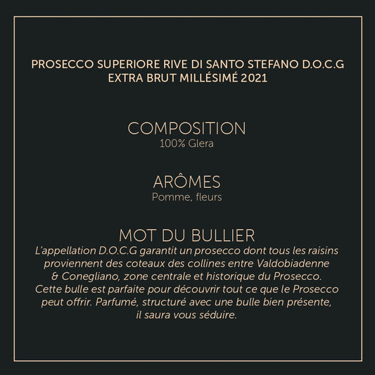 RIVE DI SANTO - Prosecco Supérieur Valdobiadene D.O.C.G - Millésimé 2023 - Numérotée - Extra BrutPrix habituel €17,50Prix habituelPrix unitaire / par-
