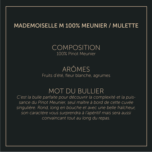 Mademoiselle M 100% Meunier - Mulette - BrutPrix habituel €57,20Prix habituelPrix unitaire / par-
