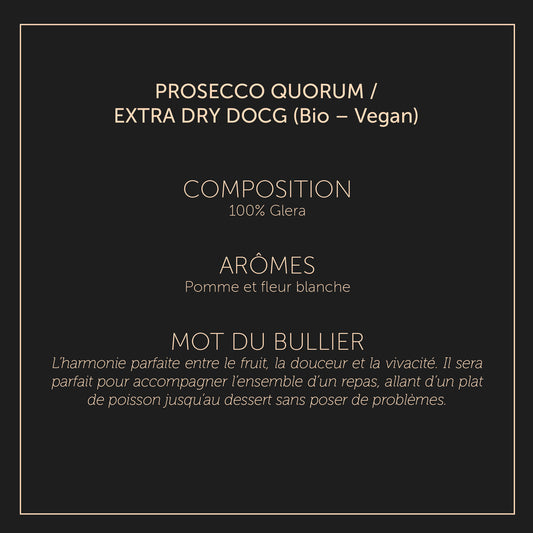 Quorum - Prosecco Supérieur DOCG Bio / Végan - Extra DryPrix habituel €13,90Prix habituelPrix unitaire / par-