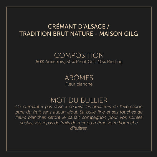 Tradition Brut Nature Gilg - Crémant d'Alsace - Brut NaturePrix habituel €17,50Prix habituelPrix unitaire / par-