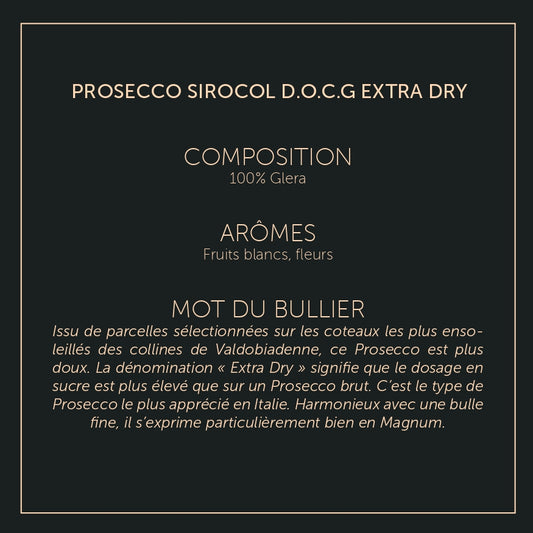 SIROCOL – Prosecco Supérieur Valdobiadene D.O.C.G - Extra DryPrix habituel À partir de €14,50Prix habituelPrix unitaire / par-