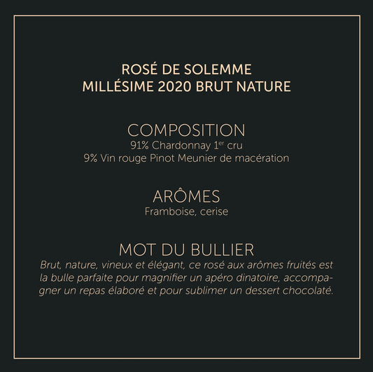 Rosé de Solemme Millésime 2020 - Brut NaturePrix habituel À partir de €66,10Prix habituelPrix unitaire / par-