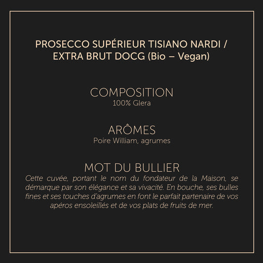 Tiziano Nardi - Prosecco supérieur Bio / Vegan DOCG - Extra BrutPrix habituel €20,20Prix habituelPrix unitaire / par-