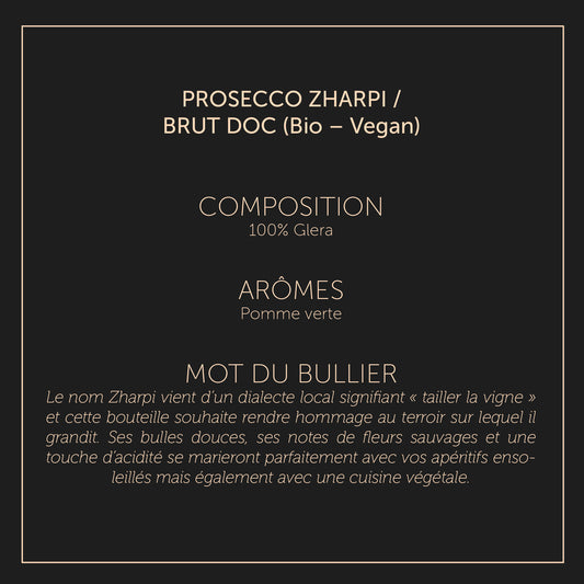 Zharpi - Prosecco DOC - BrutPrix habituel €12,50Prix habituelPrix unitaire / par