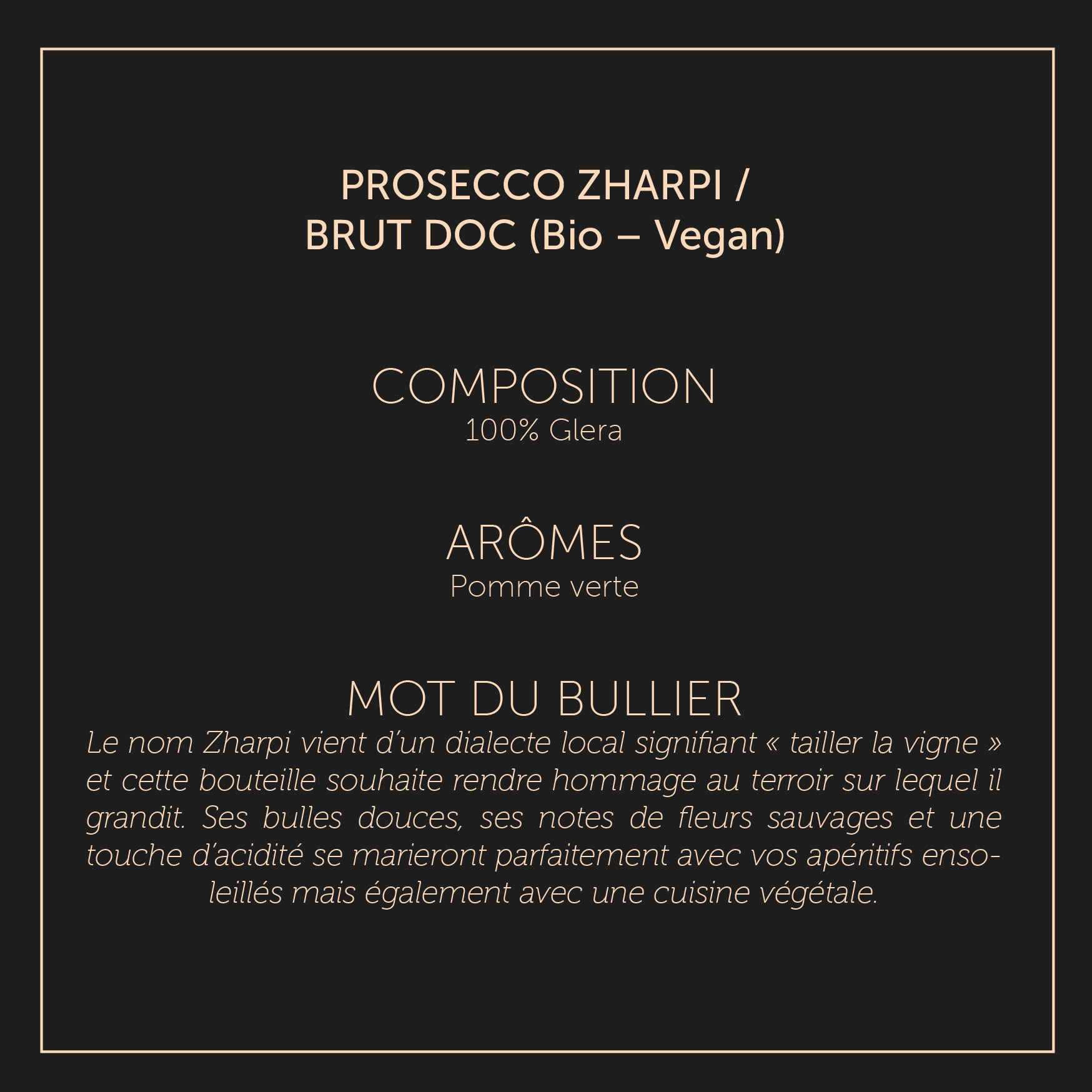 Le nom Zharpi vient d’un dialecte local signifiant « tailler la vigne » et cette bouteille souhaite rendre hommage au terroir sur lequel il grandit.